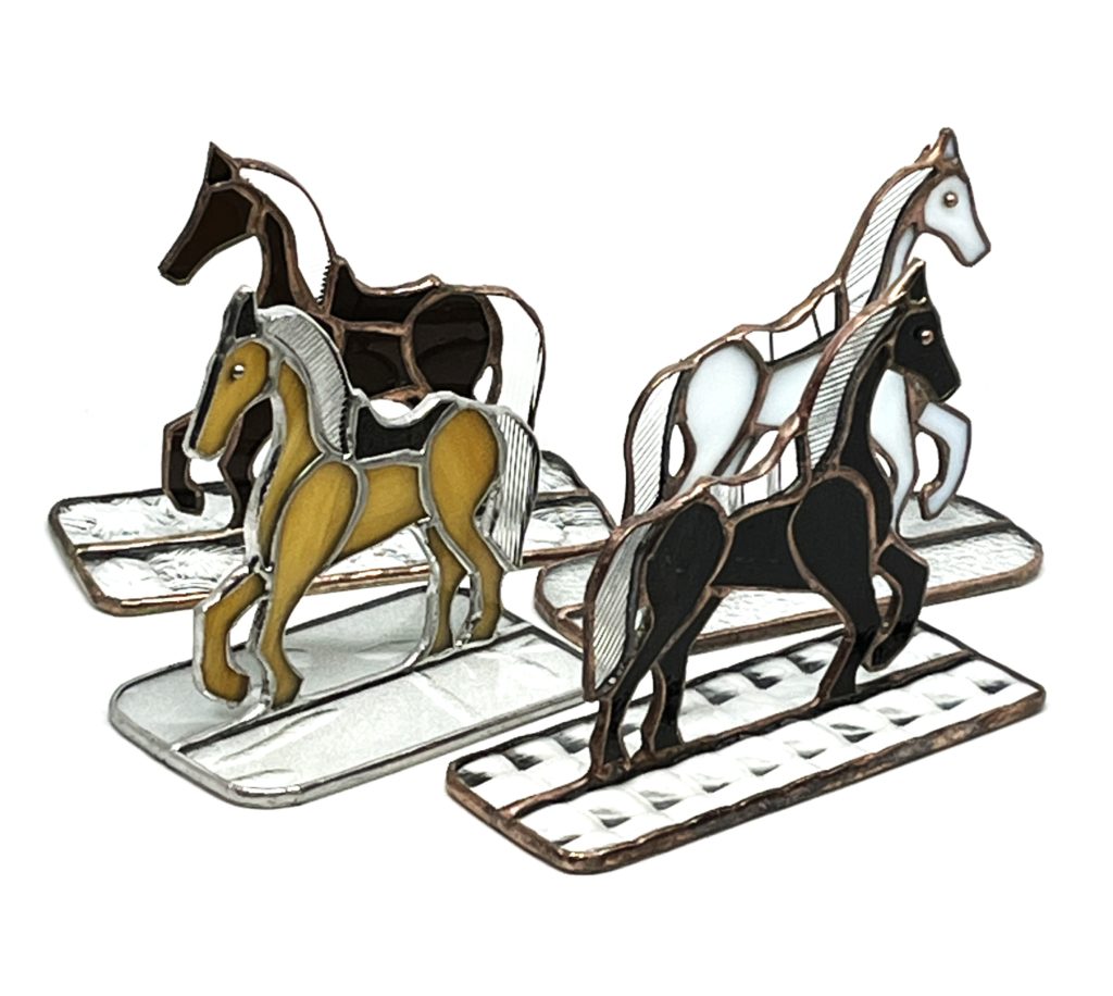 透明ガラス、白、茶、黒のガラスを使って馬を作りました。
